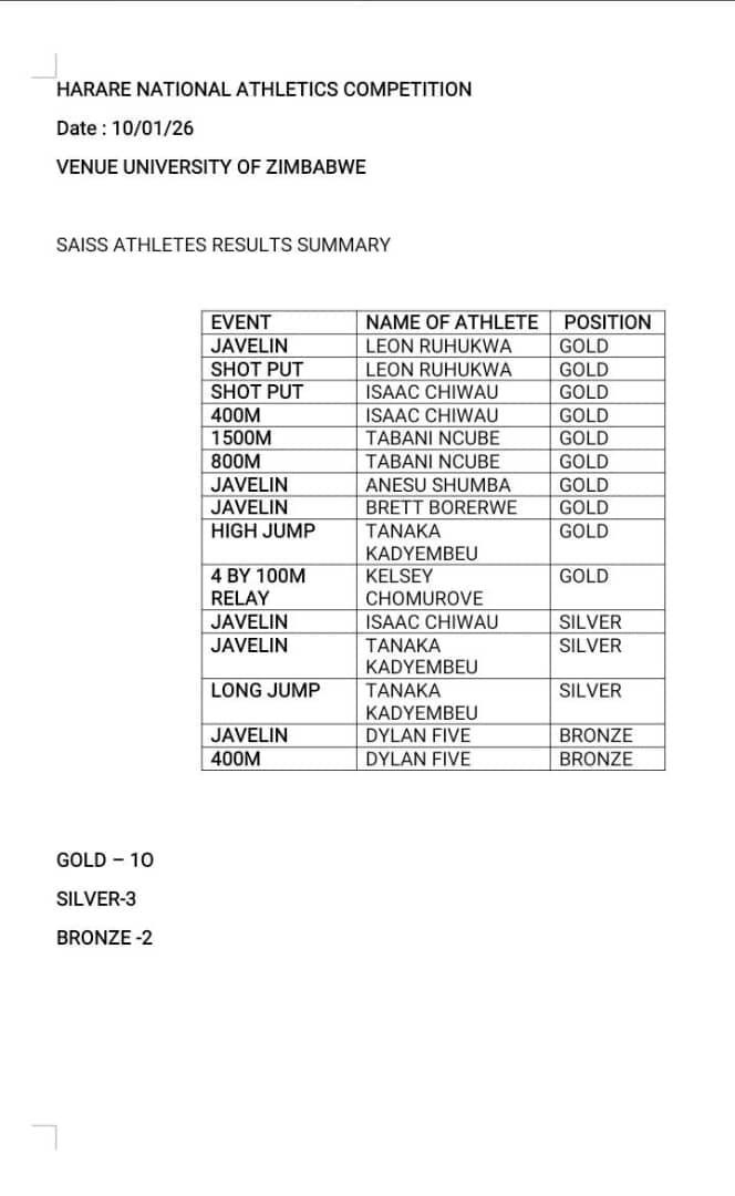 “Thabani has demonstrated exceptional skill and dedication in athletics, and his performance representing Zimbabwe drew the attention of SAISS selectors,” he said.